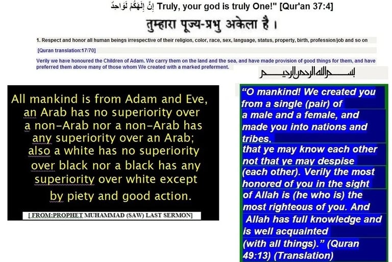 Respect and honor all human beings irrespective of their religion, color, race, sex, language, status, property, birth, profession/job and so on