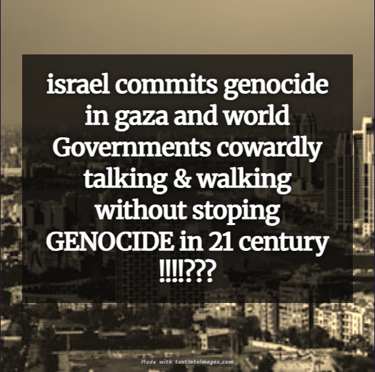 israel commits genocide in gaza and world Governments cowardly talking & walking without stopping GENOCIDE in 21 century !!!!???